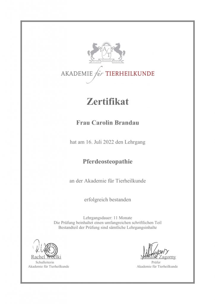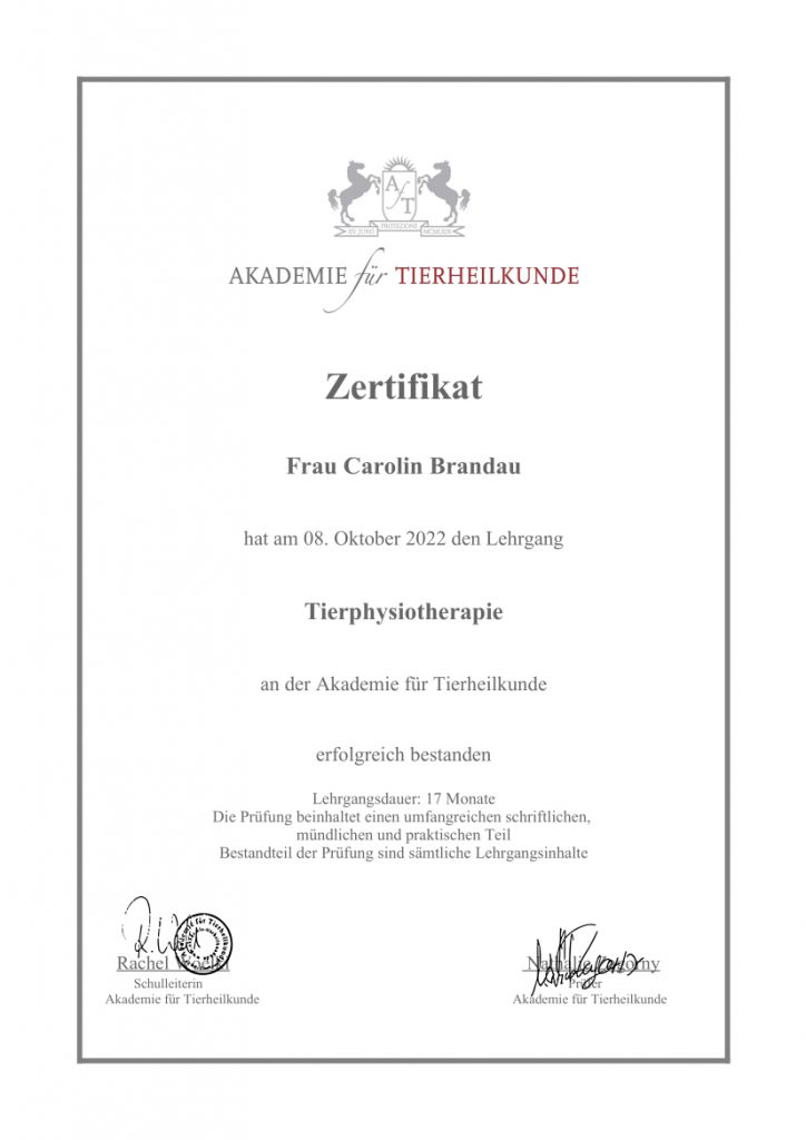 Ich freue mich auf Sie und Ihren Vierbeiner, Ihre Tierphysio- & Osteotherapeutin Carolin Brandau.